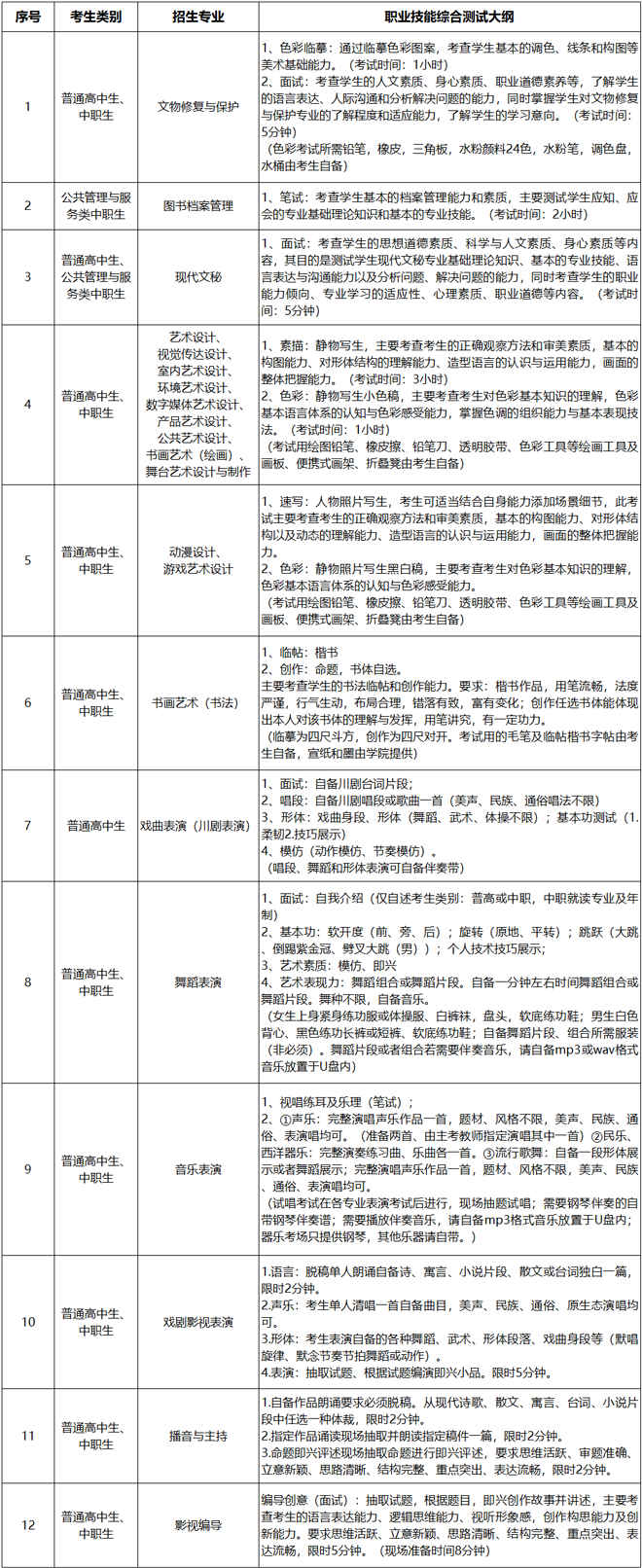 各專業(yè)單獨(dú)招生考試按照“文化考試+職業(yè)技能綜合測試”的方式進(jìn)行考核。