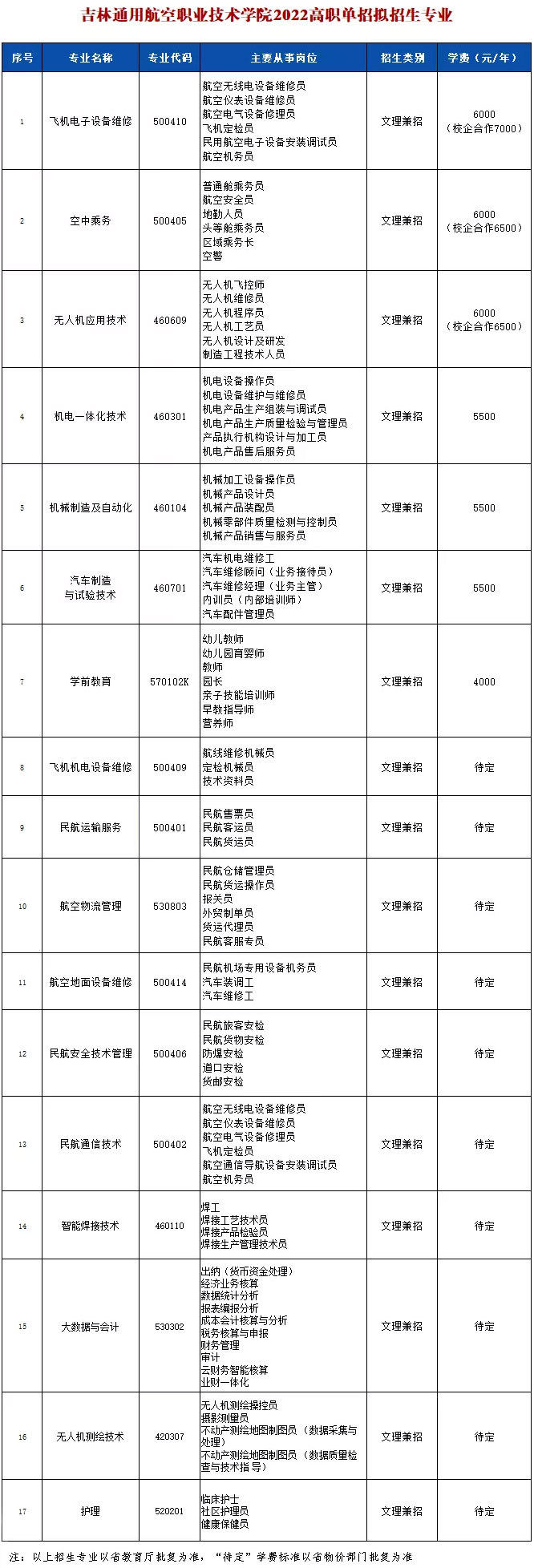 高三的莘莘學子即將迎來2022年高職單招文化素質考試,為方便考生了解、掌握我院招生信息,現將吉林通用航空職業技術學院2022年擬招生專業公布如下: