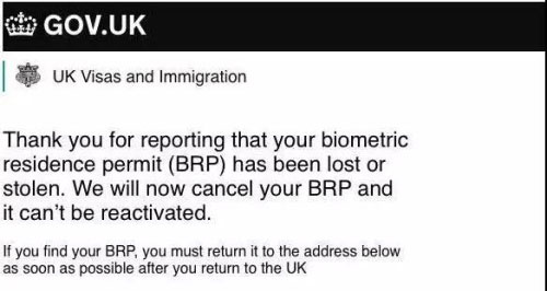 丟失BRP卡的情況可以分為在英國境內、境外兩種。我們先來講境外丟失。