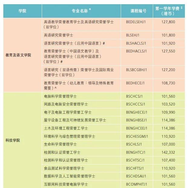 以下列出各個四年制本科生課程學(xué)生學(xué)費(fèi),僅供參考: