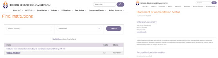 渥太華大學(xué)獲得美國(guó)六大教育聯(lián)盟之 Higher Learning Commission (HLC) 認(rèn)證:
