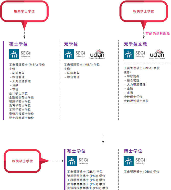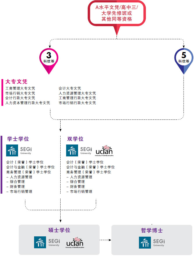 (雙學位文憑,世紀大學與英國中央蘭開夏大學)