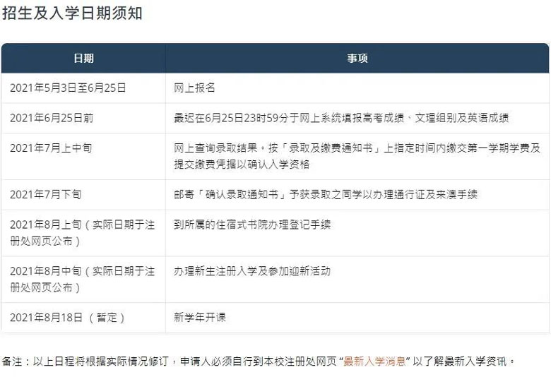 申請人必須最遲在2021年6月25日于網上系統填報高考成績、文理組別及英語成績,申請人如收到申請編號通知及于網上系統填妥高考分數、文理組別及英語分數,代表已完成報名手續。即使已辦理繳費,未填報高考成績、文理組別及英語科成績之申請將視為未完成報名手續而不予錄取。