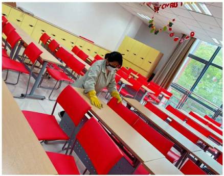 除了返校前的消毒打掃工作,我們還準備了各類消毒用品和消毒工具,安排了值日表,返校后將每日有序進行教室和學生宿舍的打掃和消毒工作。