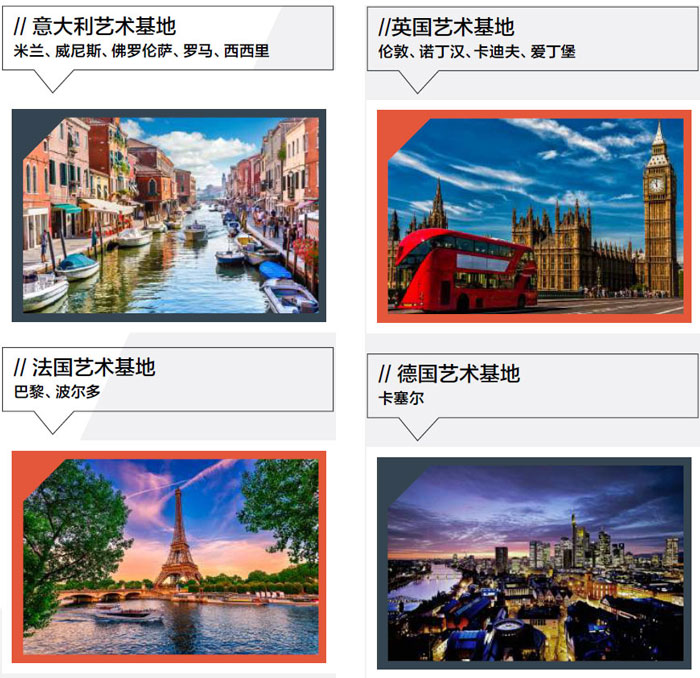 為貫徹落實中共中央、國務院關于《中長期青年發展規劃(2016—2025年)》的文件精神,加強青年藝術人才的中外交流及合作,造就青年文化人才,提升新時代青年文化人才的國際意識,文化和旅游部人才中心發起“青年藝術人才國際培養與交流推廣計劃”,英文名為Global Art Bases Project(簡稱GAB),聯系包含中國、英國、意大利、法國、德國、西班牙、俄羅斯、韓國、日本、泰國等國際的政府機關、頂尖藝術高校和專業機構、藝術組織、基金會,在全球建立特色藝術人才培養基地。該項目聯合海外著名藝術高校、藝術機構開展藝術交流學習,主要包含“外語強化培訓課程”、“藝術學科培訓”、“海外聯合展覽與演出”等內容。