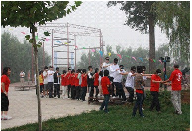 緊接著,我們又分別進行了斷橋,電網兩個項目,每個挑戰都帶給了我們不同的感悟,斷橋中,永遠記得教練的那句教誨--如果你已經決定開始,那么唯一的選擇就是繼續下去,不論結果如何。的確,路是自己選的,沒有理由后悔,正如現實中的我們,既然已經作出出國的決定,那么唯一的選擇就是戰勝自己的膽怯和懶惰,跨越過這艱難的一步,那也將是通往成功的制勝飛躍。而在電網中更多體會到的是謀劃和團結的作用。每一個網就像人生的一道門,在進門之前都需要有認真的思考然后借助朋友的力量才能成功。如果只是單憑自己,低頭蠻干。結果只有自己去品嘗失敗的苦果。