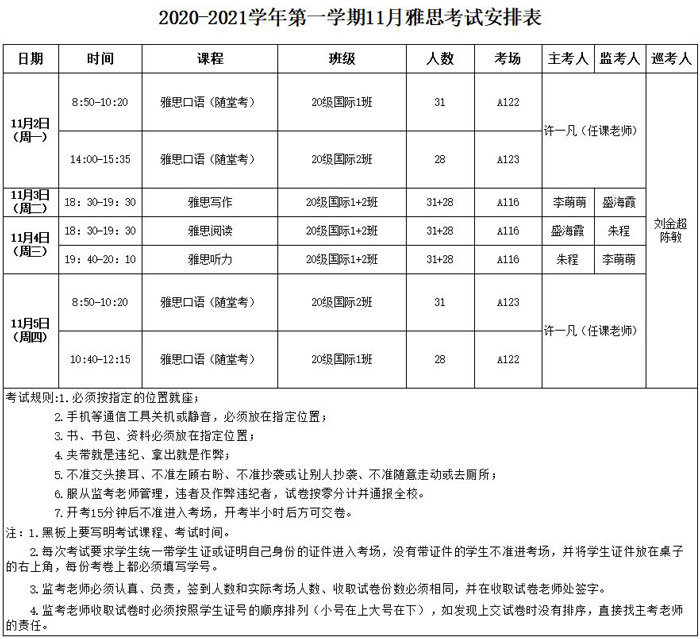 11月2日至5日南理工2020級(jí)國(guó)際本科學(xué)生首次參加校內(nèi)雅思月考,聽說(shuō)讀寫,全面考核,同學(xué)們將一步一個(gè)腳印穩(wěn)扎穩(wěn)打,乘風(fēng)破浪。