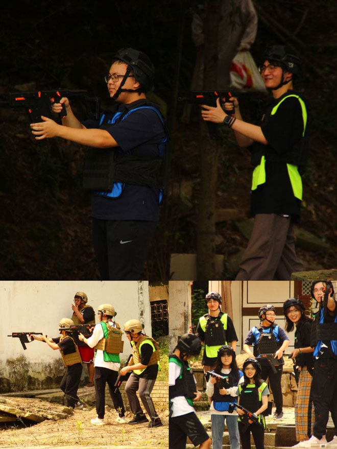 接下來(lái)的真人CS把同學(xué)們的熱情又帶到了高點(diǎn),不管是男生女生都躍躍欲試扳動(dòng)器械的每一個(gè)機(jī)關(guān),瞄準(zhǔn)狙擊。同學(xué)們分成兩組,互為攻守,真正地跟伙伴們通過(guò)計(jì)劃與協(xié)作,為自己的小部隊(duì)贏得勝利!同學(xué)們不畏paintball打在身上的疼痛,奮勇突破嚴(yán)密的防線,通過(guò)實(shí)踐意識(shí)到堅(jiān)持和團(tuán)隊(duì)精神才是勝利的關(guān)鍵。