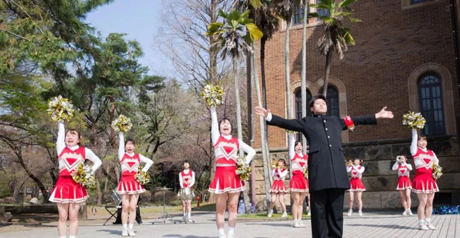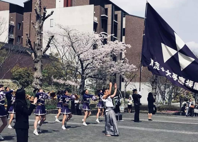 同志社大學 | 入學式會場外的應援團