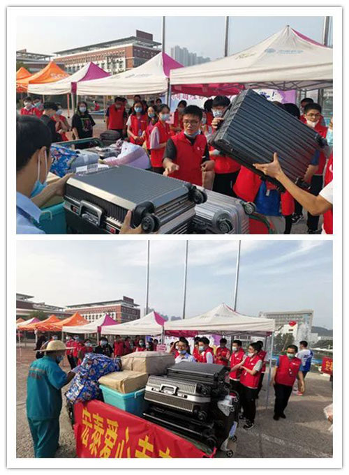特殊時(shí)期,家長(zhǎng)送孩子只能到指定區(qū)域,之后由咱們的“紅馬甲”志愿者引領(lǐng)學(xué)生進(jìn)行報(bào)到,并進(jìn)行行李搬運(yùn)。各位家長(zhǎng)們盡管放心,這也是孩子們開(kāi)啟獨(dú)立生活的第一步。