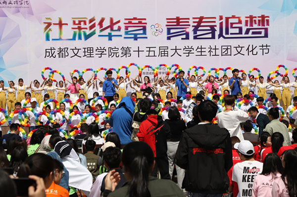 開幕式上,文理校友帶來的《萌寵大作戰》為活動增添樂趣,TATA民謠社、櫻花日語社、零度音樂社帶來的《飛young青春》將現場的氛圍引向高潮,中國特色社會主義理論體系學習協會及各社團代表表演的《我們都是追夢人》表達出文理筑夢人的奮斗青春,展現出文理學子青春向上的精神風貌。