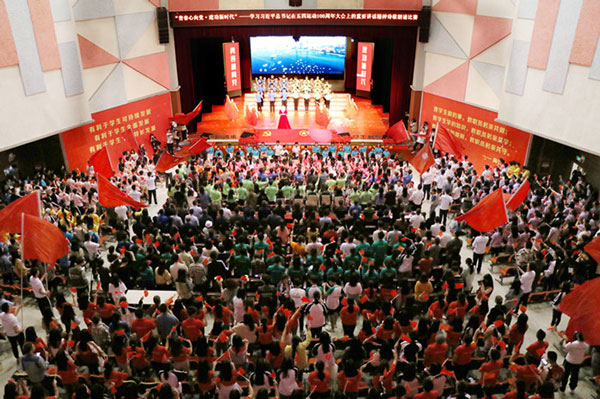 為貫徹落實共青團中央(中青發[2019]7號)文件《共青團中央關于認真學習宣傳貫徹習近平總書記在紀念五四運動100周年大會上重要講話精神的通知》的要求,我校于5月9日晚7時,在星空劇場隆重舉行“青春心向黨·建功新時代”學習習近平總書記在五四運動100周年大會上的重要講話精神詩歌朗誦比賽。我校董事長劉學民,校長唐小林,黨委書記高華錦等領導出席,各二級學院院長、黨總支書記以及千余名師生共襄盛舉。