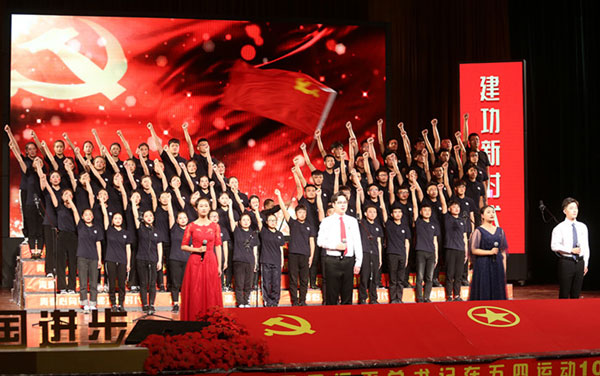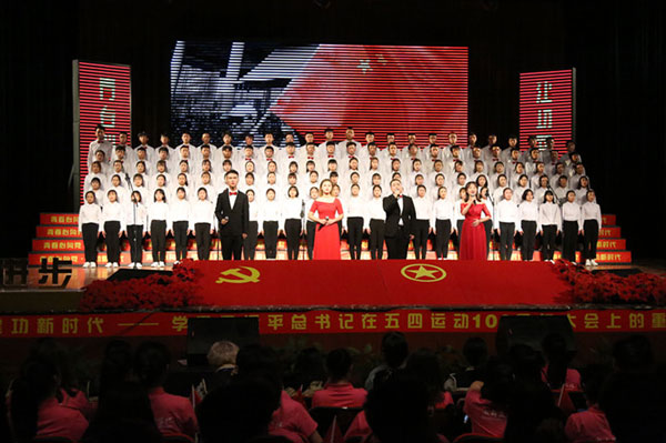 本次活動在《五四記憶》百年紀念片中拉開序幕,全體師生齊唱團歌。