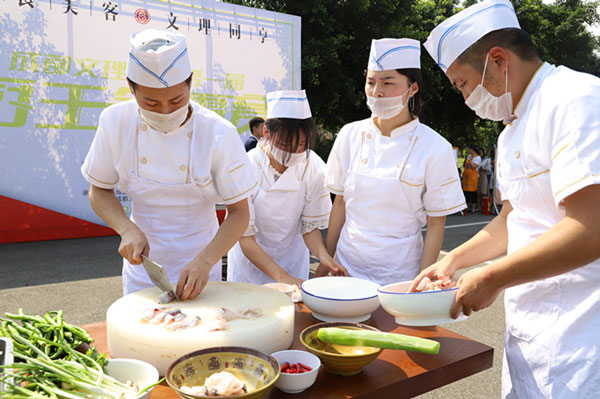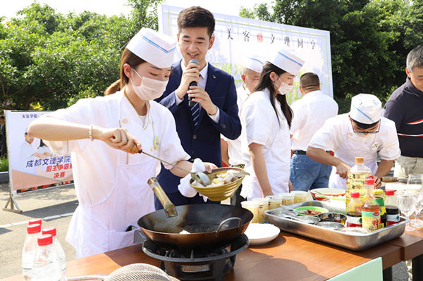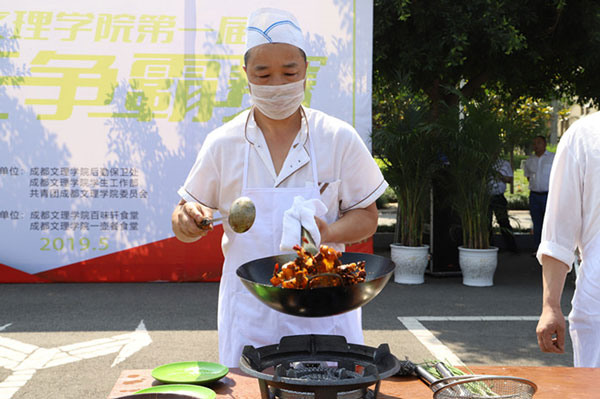 5月23日下午3時,我校第一屆“廚王爭霸”賽決賽于社團文化廣場順利舉行。我校黨委書記高華錦等領導蒞臨現場,各職能部門負責人及各二級學院師生代表參與。四川彬蓉餐飲管理有限公司董事長岳龍斌,總經理吳名兵,成都培峰餐飲管理有限公司董事長李培,總經理余寶元,管理學院酒店管理專業教師劉飛擔任本次比賽評委。團體組一等獎由經濟學院獲得,教師組一等獎由文法學院輔導員袁帥獲得。