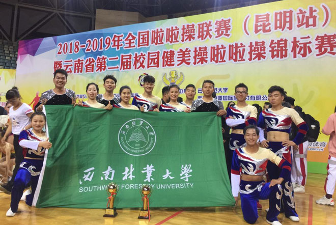 2018-2019年全國啦啦操聯賽(云南站)暨云南省第二屆校園健美操啦啦操錦標賽于11月9–11日在云南師范大學飛碟體育館進行,我校健美操隊參加了此次比賽體育院校組的比賽,經過兩天的角逐,我校健美操隊獲得兩個健美操項目冠軍、一個啦啦操項目第四名的優異成績,為學校取得了榮譽。同時教練員趙化斌老師獲得“優秀教練員”的榮譽稱號。