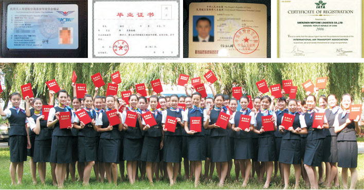 根據所學科目,自行參加相關部門或行業組織的職業技能考試,成績合格,可取得相應的職業資格證書,如無人機操作證書、國際航空運輸協會(IATA)職業資格證書、安檢證書、公共英語三級、禮儀證書以及普通話證書、CCAR147民航維修基礎培訓合格證、基本技能證書、機型證書等。