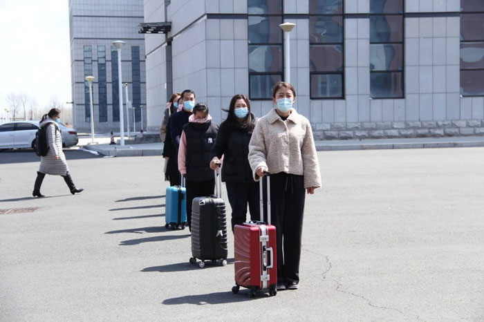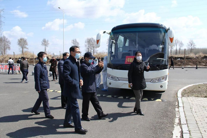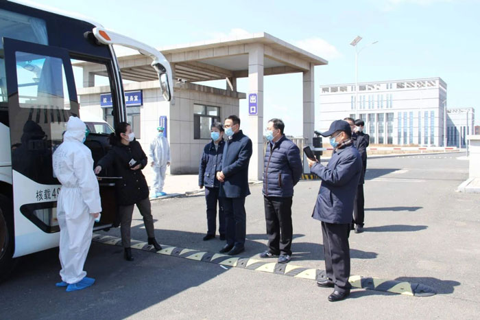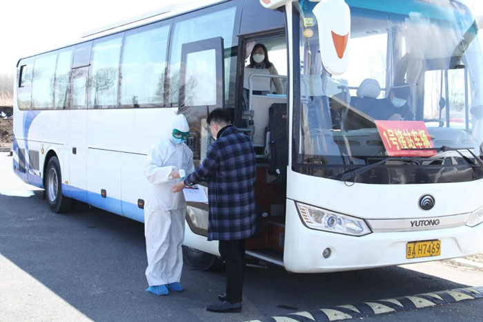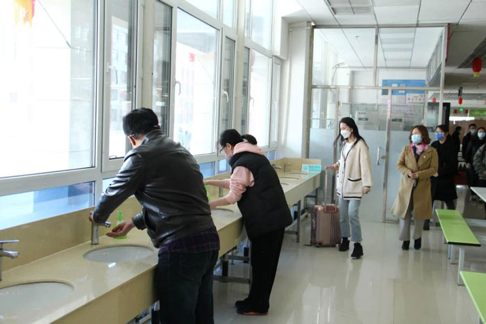 接站前先對接站車進行全面消毒,模擬人員(12人)排隊乘車配合測溫登記、就坐(一人兩座),體溫出現異常的學生迅速上報,下車前再次測溫,檢測表由隨行人員交至南門保衛人員。
