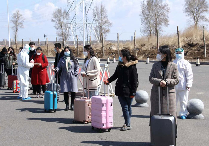在學生返校報道入校門檢環節演練中,由保衛處人員引領學生按照規劃好的入校通道間隔一米以上有序排隊,經過身份核實、入校登記和測溫等環節后,統一從學校東門入校。并對體溫出現異?;虿环戏敌l件的學生給予針對性處理。為減少校內人員聚集,陪同人員一律不準入校。