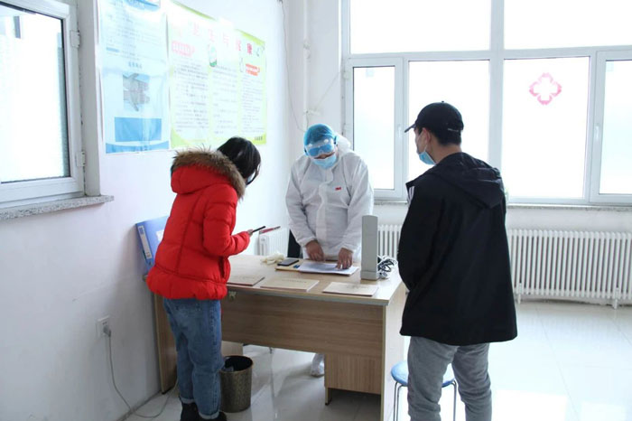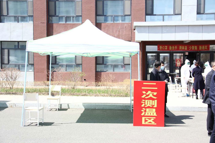在學生發熱應急處理環節演練中,對于體溫超過37.3℃、經校醫院醫護人員復檢后體溫仍異常的學生,立即聯系寬城區醫院并撥打120急救中心說明情況。并迅速啟動應急預案,上報學校疫情防控領導小組,對其返程及在校接觸人員進行徹底排查。醫院檢查結果如若正常,由醫務人員帶到學校隔離區進行隔離觀察。