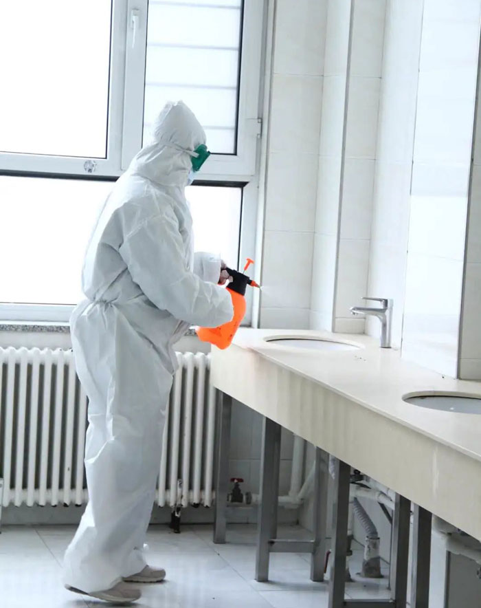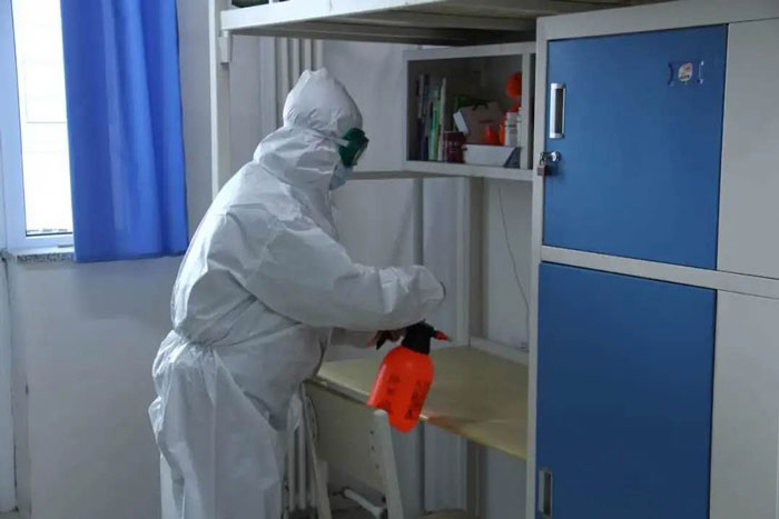 在學生寢室入住環節演練中,對所有進入公寓的同學進行消毒和體溫檢測,測溫合格登記后方可進入,體溫異常的學生由專門人員帶到臨時隔離區進行二次測溫。同時安排專門人員對公寓進行定時消毒,保障公寓衛生安全。