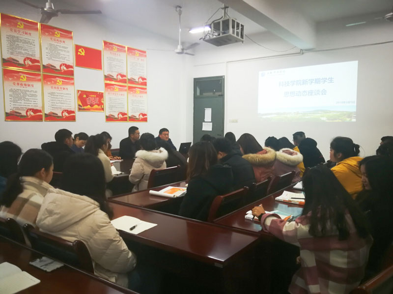 為及時了解科技學院學生思想動態,傾聽學生真實的聲音,更好地做好新學期教學和學生工作,3月5日上午,科技學院在204會議室召開了2019年春季新學期學生思想動態座談會,科技學院黨總支書記、執行院長孫成偉出席會議并作指導講話。全體專兼職輔導員以及28名班級學生代表參加了座談會。座談會由李冬老師主持。