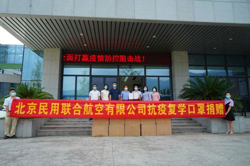 2020年7月28日上午,我校“產學合作 協同育人”項目合作辦學單位——北京民用聯合航空有限公司向我校捐贈2萬只防護口罩,助力我校疫情防控工作。我校副校長何仕率后勤處、繼續教育學院相關負責人與北京民用聯合航空有限公司代表楊文富先生及其項目組相關負責人出席捐贈儀式。