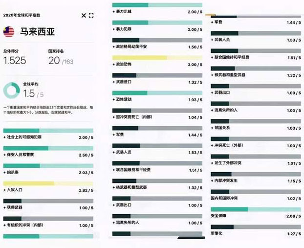 馬來西亞在2020年163個國家中排名第20,亞洲第三。