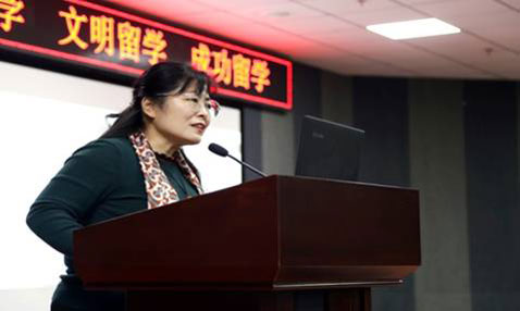 在莊嚴的《國歌》聲中,培訓(xùn)會拉開了帷幕。楊麗娟副主任就教育部“平安留學(xué)”出國留學(xué)行前培訓(xùn)的背景和服務(wù)項目、出國留學(xué)的國家政策等作了簡要介紹,她希望廣大出國留學(xué)人員能認真領(lǐng)會“平安留學(xué)、文明留學(xué)、健康留學(xué)、成功留學(xué)”的理念,堅守愛國主義精神,培養(yǎng)和提升自身的家國情懷,為出國留學(xué)做好充分準備。