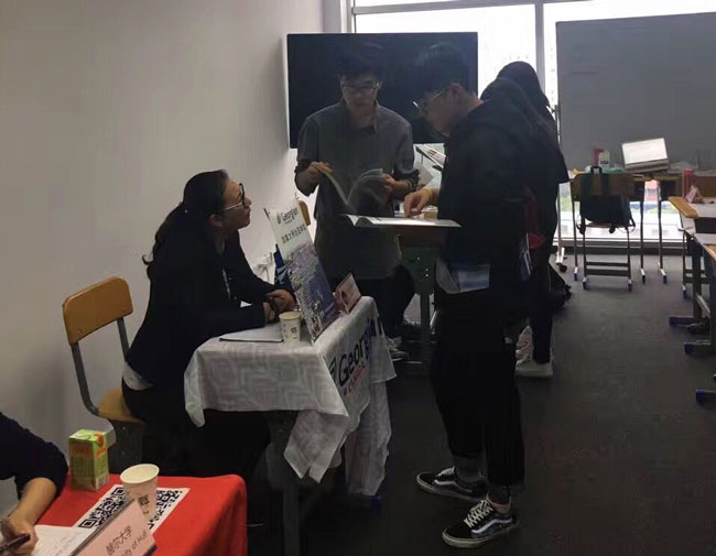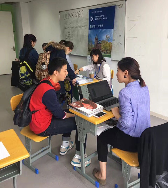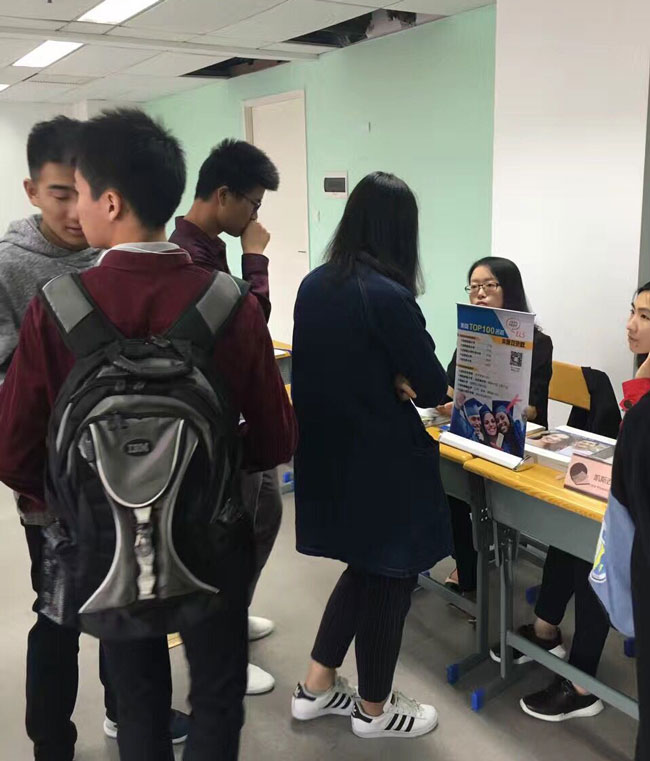 今天在我們上海外國語大學國際教育中心舉行了留學展,來了很多國外大學的校方代表,有曼徹斯特大學、東英吉利大學、美國紐約大學,澳洲國立大學等等,讓我們的學生在自己的學校里可以近距離的接觸很多名校的校代表,通過跟校代表的溝通中,了解學校的申請要求,學費,還有該所學校所在的地理位置和生活環境,也讓校代表通過溝通來了解我們的學生,也作為一個面試的預演。