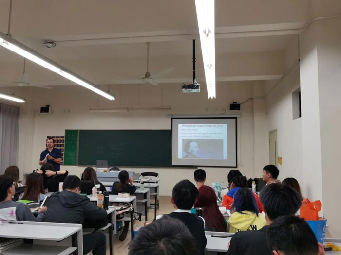 2021年4月22日晚上18:00在上外松江校區(qū)四教樓410教室開展了關(guān)于多元文化音樂及音樂創(chuàng)作的專題講座,講座老師為Gonzales Michael Robert。2020級(jí)蘭卡項(xiàng)目、英國2+2項(xiàng)目和澳大利亞四星級(jí)項(xiàng)目的同學(xué)們聆聽了本次講座。