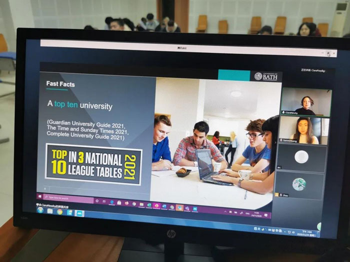11月24日晚19:00,英國巴斯大學校方代表Ciara Newby老師為我院2020級IFC國際預科課程的同學們帶來了一場精彩的線上留學講座。在講座中,Ciara Newby老師還邀請了巴斯大學的校友Sammi Huang同學,通過視頻交流的方式,共同為預科班的同學們介紹了巴斯大學留學的詳細情況,包括英國巴斯城市的整體情況、巴斯大學的學校概況、專業設置、校園生活以及申請要求等。