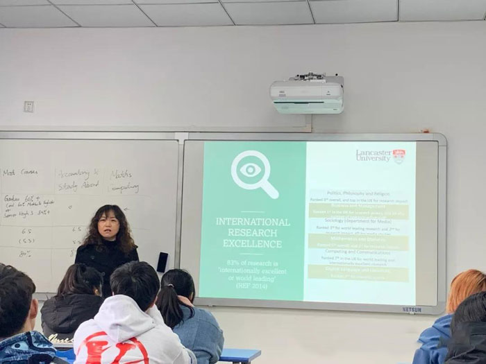 Sophie老師不僅在學業上對大家做出了指導,例如,怎么根據自己的雅思分數申請什么樣的專業,哪些專業是蘭卡斯特大學的強勢專業等,還對同學們去了英國后在生活和風土人情上該如何適應給出了寶貴的建議。到場的師生都覺得這是出國前意義深遠的一堂課。