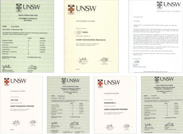 所有入讀川大UNSW預(yù)科專業(yè)課的同學(xué),將會(huì)獲得UNSW預(yù)科的注冊(cè)學(xué)籍,與本土學(xué)生一樣,獲得學(xué)生ID號(hào),并通過(guò)該ID號(hào)登陸官網(wǎng),在線查詢個(gè)人成績(jī)、獲知課程安排。學(xué)生同時(shí)還將獲得新南威爾士大學(xué)的預(yù)注冊(cè)學(xué)籍,共享新南威爾士大學(xué)的圖書館等資源。在川大UNSW預(yù)科順利結(jié)業(yè),將獲新南威爾士大學(xué)官方頒發(fā)的紙質(zhì)成績(jī)單及結(jié)業(yè)證,而這正是UNSW預(yù)科受澳新所有選校認(rèn)可的依據(jù),后期獲得對(duì)接大學(xué)錄取后,順利完成學(xué)業(yè),獲得該大學(xué)學(xué)位證書。