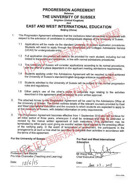 2015年,英國大學綜合排名前20的蘇塞克斯大學(university of Sussex)也正式與東西方國際教育(EWIE)簽署了IFC預科認證協議!