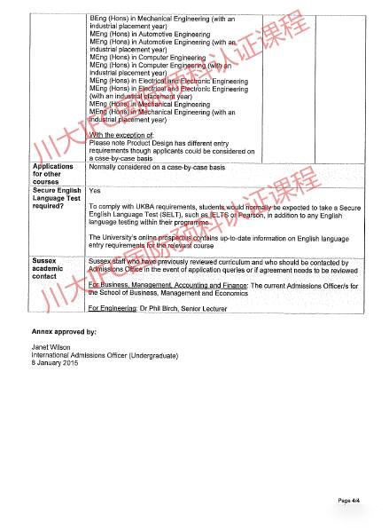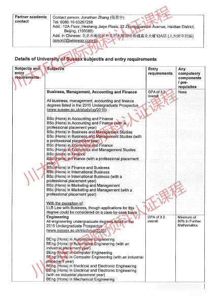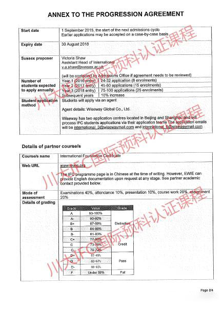 蘇塞克斯大學針對于就讀IFC國際預科認證課程的學生全面詳細羅列了學生就讀IFC后,對接不同的專業所需的IFC預科專業課成績要求。詳見下圖協議: