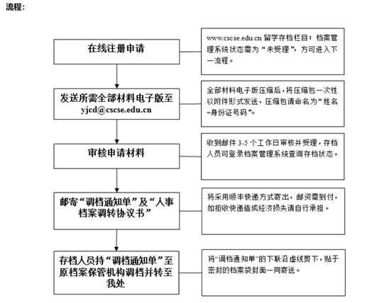 2、 自費出國(境)留學人員只可選擇現場或電子郵箱申請辦理的其中一種方式,如通過電子郵箱申請,“調檔通知單”及“人事檔案調轉協議書”只能通過郵寄接收。