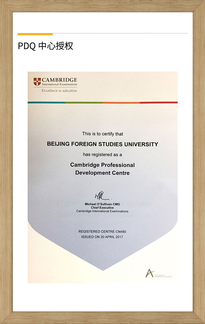 北京外國語大學國際課程中心是劍橋國際授權的教師發展認證(PDQ)中心,這意味著我校能夠提供世界一流的國際課程教師培訓和認證服務。劍橋國際教師職業發展中心(Cambridge Professional Development Centre,簡稱PDQ中心)是劍橋大學國際考評部研發,由倫敦大學學院教育研究院(UCL-IOE,該教育研究院連續三年在世界大學教育領域排名第一)論證和支持的在崗培訓項目。目前,全球共有182個PDQ學習中心,分布于57個國家,北京現有6個PDQ中心。我校還自主研發了教師、考務人員、規劃師、學生以及國際化學校認證體系,為學校師資力量提供強大的支持與保障。