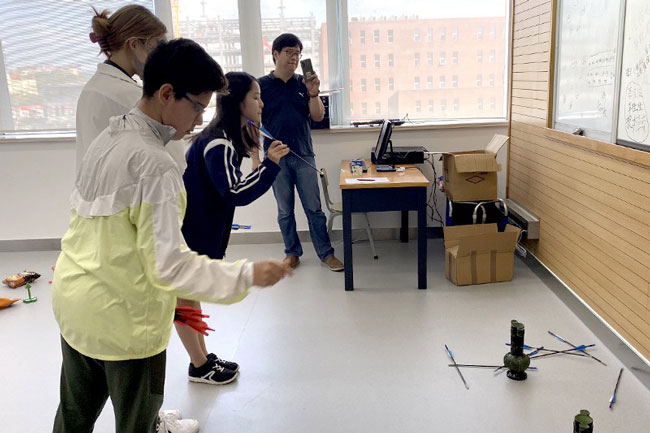 另外,投壺與套圈也是古代人民慶祝中秋的傳統游戲。對于來自不同國家的小留學生們顯得既新鮮又有趣。看那教室一隅,在漢語老師的講解和帶領下,同學們躍躍欲試,幾圈玩下來,已然變成了游藝“小達人”。