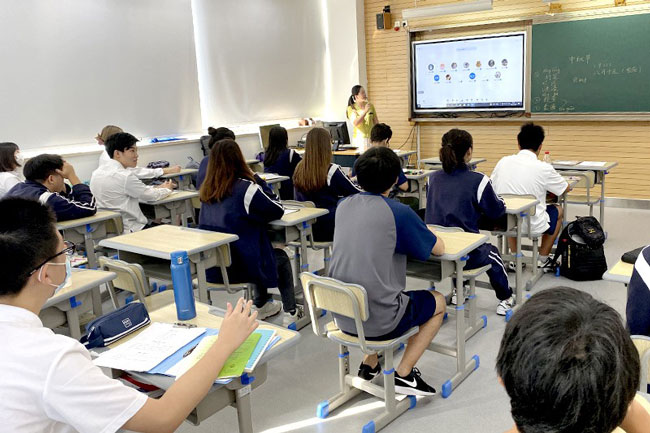 隨著鈴聲響起,中秋主題的硬筆書法比賽也拉開帷幕。明亮的教室里,同學們端坐桌前,一邊細細品讀著詩句,一邊一筆一劃地認真書寫;臺前大屏幕上,線上的同學人頭攢動,書寫用品也早已備好,當老師一聲令下,大家也開始龍飛鳳舞起來。一場由海內外學生共同參與、線上與線下聯動的書法比賽現場呈現在我們眼前。