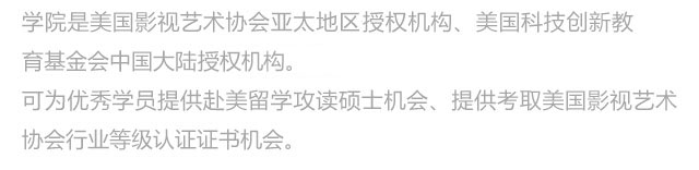 師資優勢:影視教育界著名專家教授、影完善的軟硬件配套。教學環境:千畝郊野視行業核心圈層。公園環繞周邊。 區位優勢:學院坐落于北京電影學院文創園內,園區內擁有百余家影視行專相蘭公司,真正意義的影視行業核心區。投資團隊:吉喆基金、賽富亞洲基金、中信國通、嘉頓投資、維西資本、譽上投資等強大的投資團隊為制作影視劇投資。 實踐機會:學院自有星影時代影視公司,計劃未來3年投拍100部影視劇與新媒體電影;學院在文創園區內自有大小攝影棚、綜藝棚10座,并與行專內近百家影視行專相蘭公司建立戰略合作關系,建立人才庫為行業提供人員儲備。國際合作:美國影視藝術協會亞太地區唯一授權機構,美國科技創新教育基金會中國大陸唯一授權機構。可為優秀學員提供免費赴美留學攻讀碩士機會,提供考取美國影視藝術協會行業等級認證證書機會。