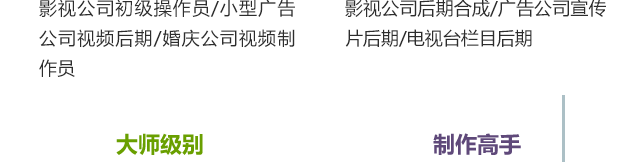 影視后期合成師的工作不僅看起來高大上,未來在職場也是進入影視公司,體面、高薪,然而只要找對方法影視后期合成師并不難學,很多行業精英都是0基礎或者轉行從事該崗位,隨著中國影視行業的發展,影視后期合成師會越來越受到重視。