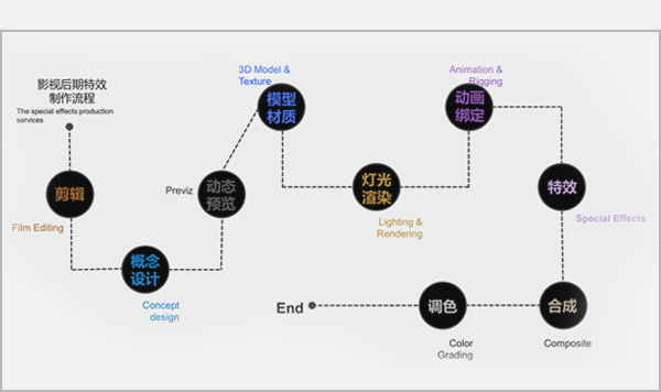 動畫及特效的后期合成制作,包括基礎調色、及分層渲染的合成等。