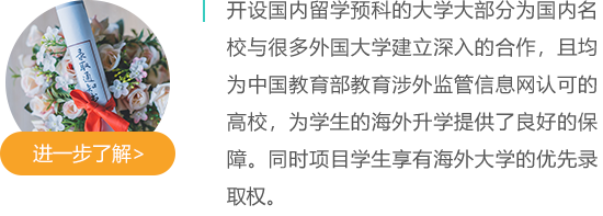 根據西方大多數國家的教育體系,海外高中生如欲進入澳大利亞、美國、新西蘭、加拿大及歐洲各國大學讀本科,必須先通過該大學的預科課程。即大學前準備課程,完成1年預科后,根據成績決定能否升入原先選擇的院校,也可根據成績轉入其它更好的大學。預科課程設計由國外大學提供,除了過語言關,預科生還必須學習所讀大學專業的預科課程,各科成績畢業考試合格、獲得預科文憑后,才能就讀國外的大學。
